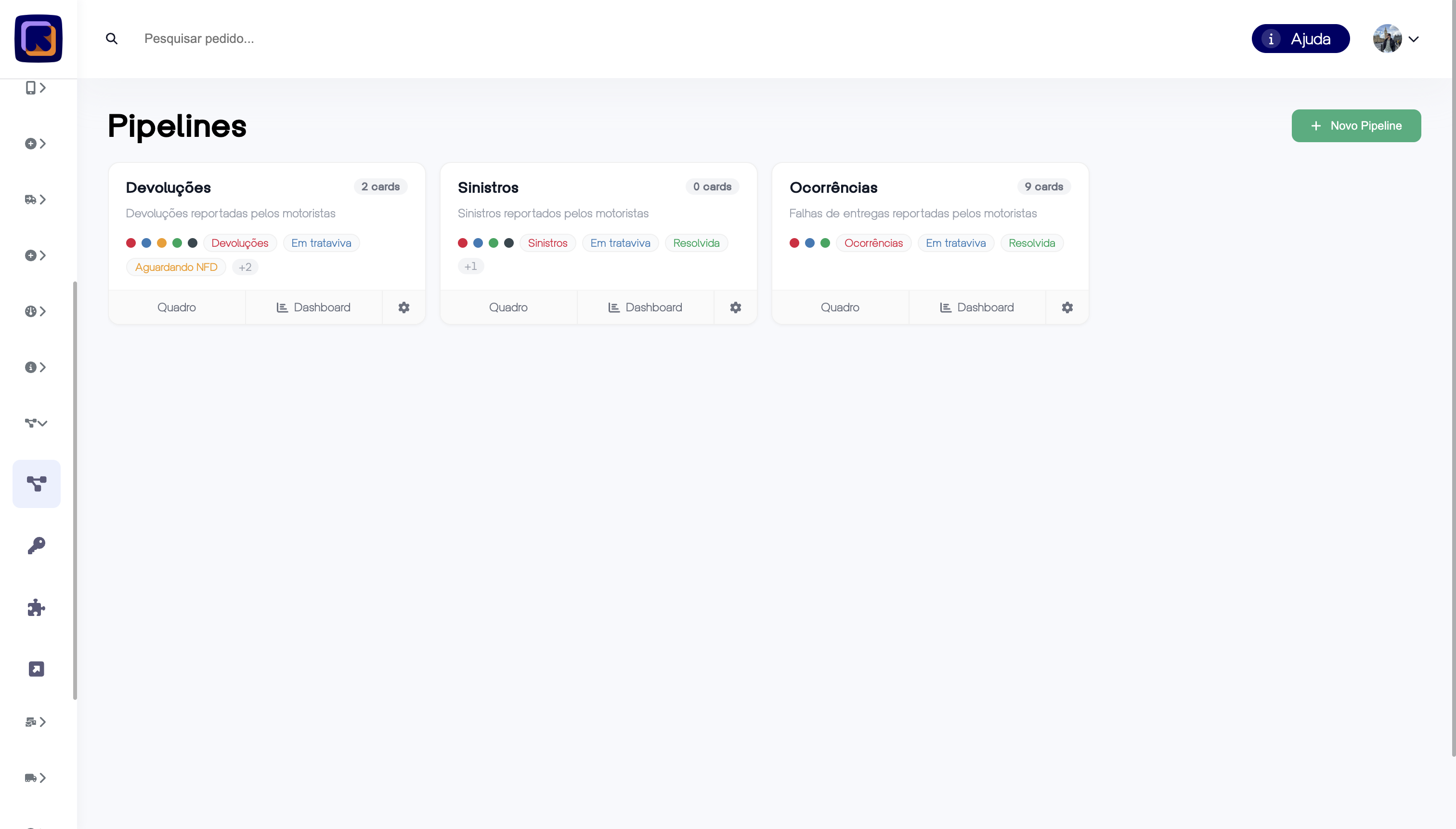 Crie e faça a gestão de múltiplos pipelines para diferentes áreas da operação: expedição, entregas, manutenção, financeiro e muito mais. Cada pipeline com as suas próprias etapas e regras de negócio personalizadas.